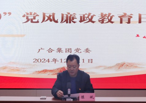 12月11日下午,廣合集團(tuán)開(kāi)展“12·9”黨風(fēng)廉政教育日活動(dòng),進(jìn)一步加強(qiáng)新時(shí)代廉潔文化建設(shè),強(qiáng)化黨員、干部廉潔自律意識(shí),營(yíng)造和弘揚(yáng)崇尚廉潔、抵制腐敗的良好風(fēng)尚。集團(tuán)黨委書(shū)記、董事長(zhǎng)陳斌主持活動(dòng)。集團(tuán)全體人員參加活動(dòng)。